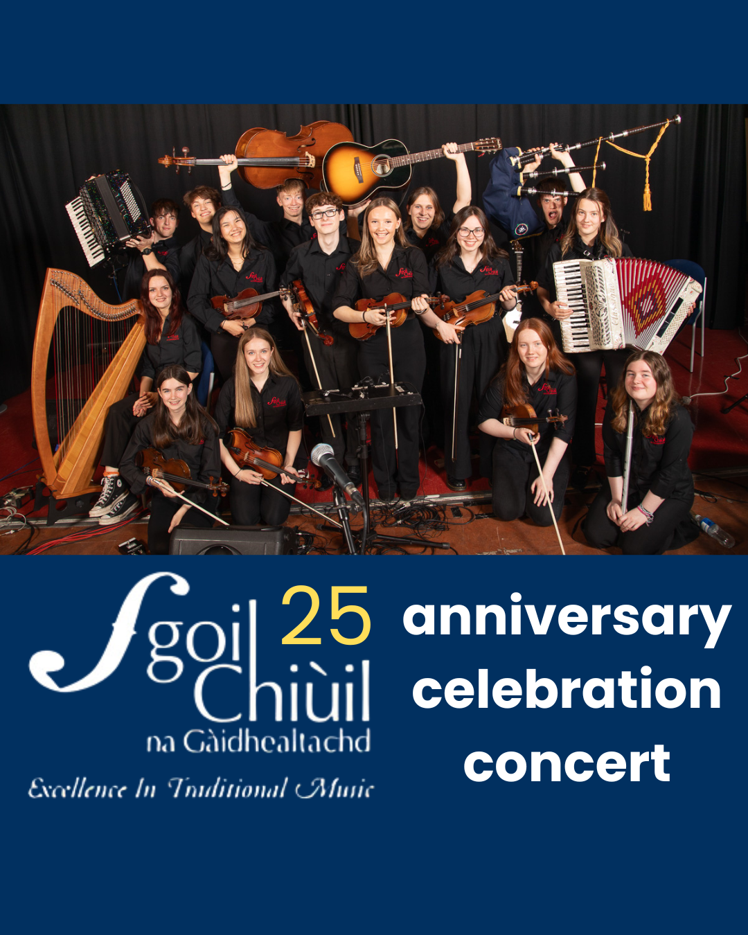 2025 marks the 25 year anniversary of Sgoil Chiùil Na Gàidhealtachd and we're excited to be working on a programme of celebratory events, including an anniversary concert in Eden Court.